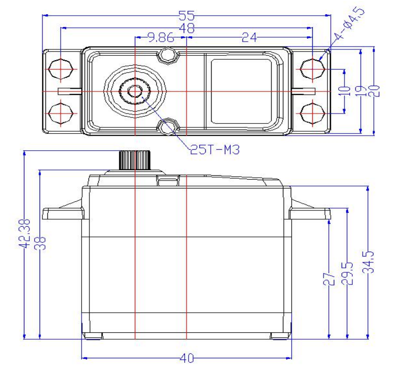 7.4V 25kg.cm数码180度铝中壳铝齿轮空芯杯舵机